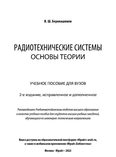 Радиотехнические системы: основы... Муаллифхо: Берикашвили В. Ш.